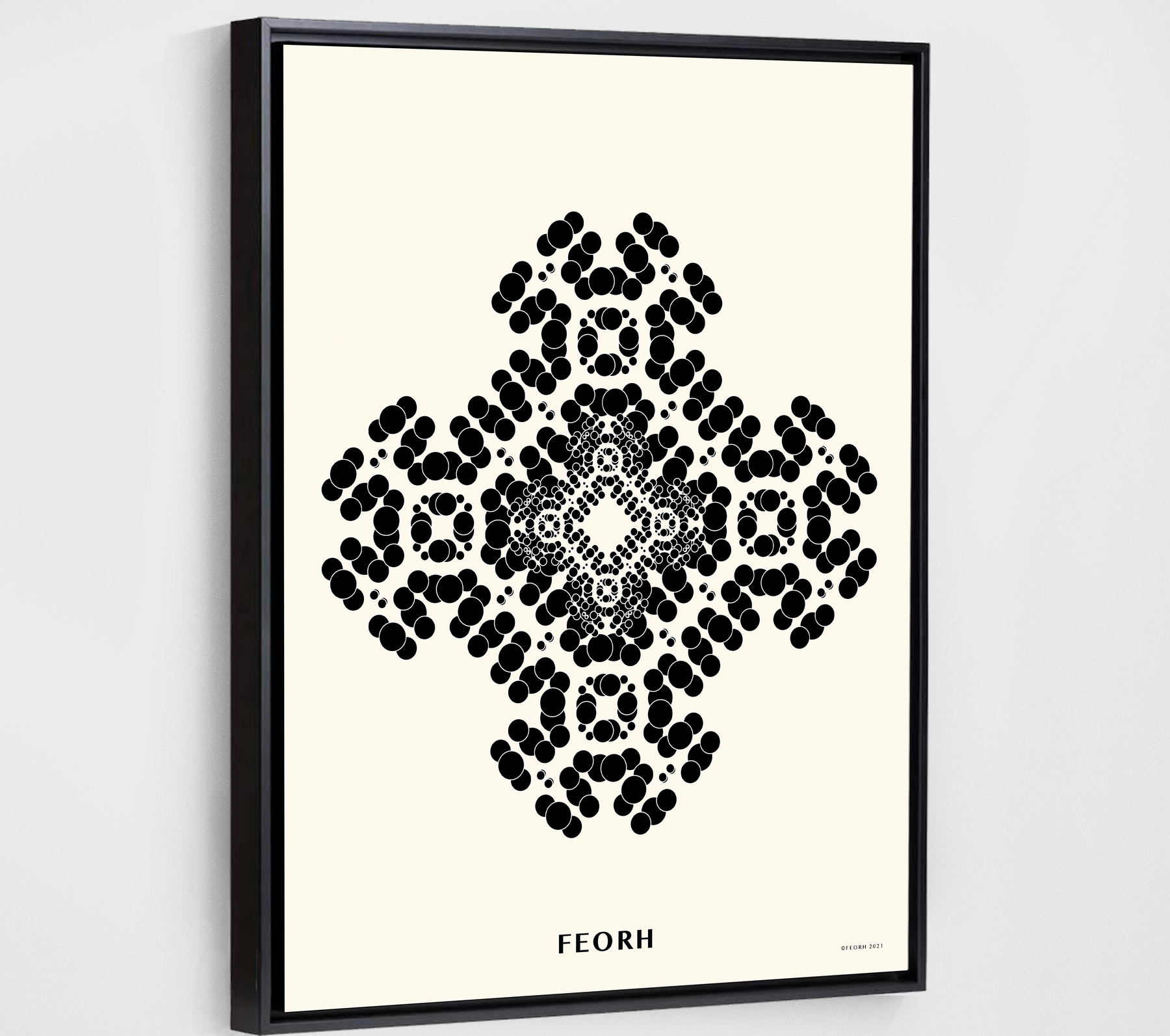 All purchases are delivered in Feorh's signature eco-friendly box. Each Feorh framed piece is shipped in a heavy duty poly bag with bubble wrapped corner protectors. Frames are shipped with hanging wire and hardware attached.
