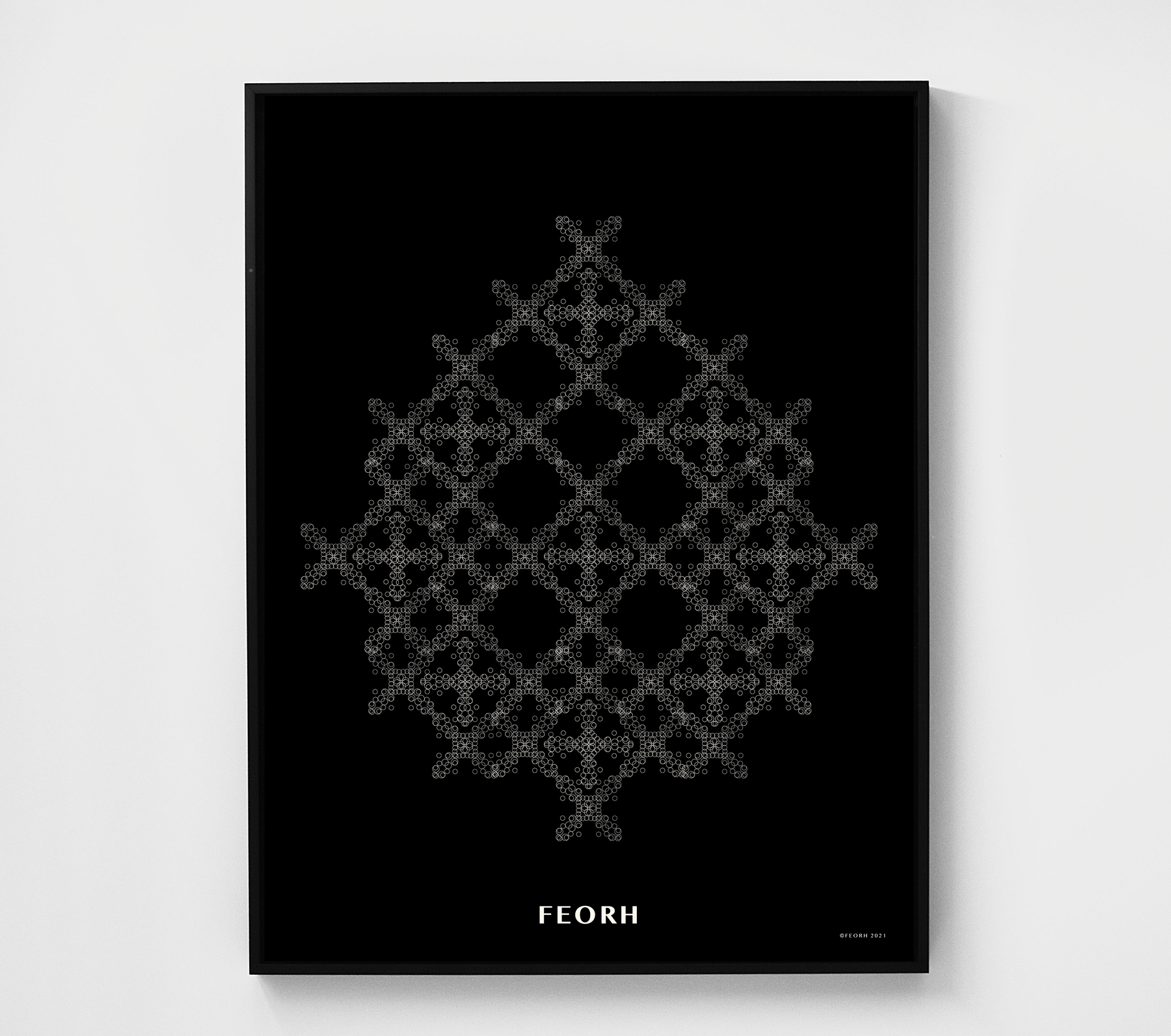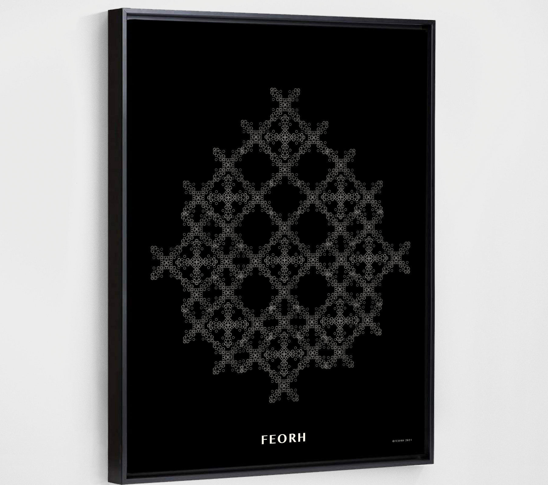 All purchases are delivered in Feorh's signature eco-friendly box. Each Feorh framed piece is shipped in a heavy duty poly bag with bubble wrapped corner protectors. Frames are shipped with hanging wire and hardware attached.