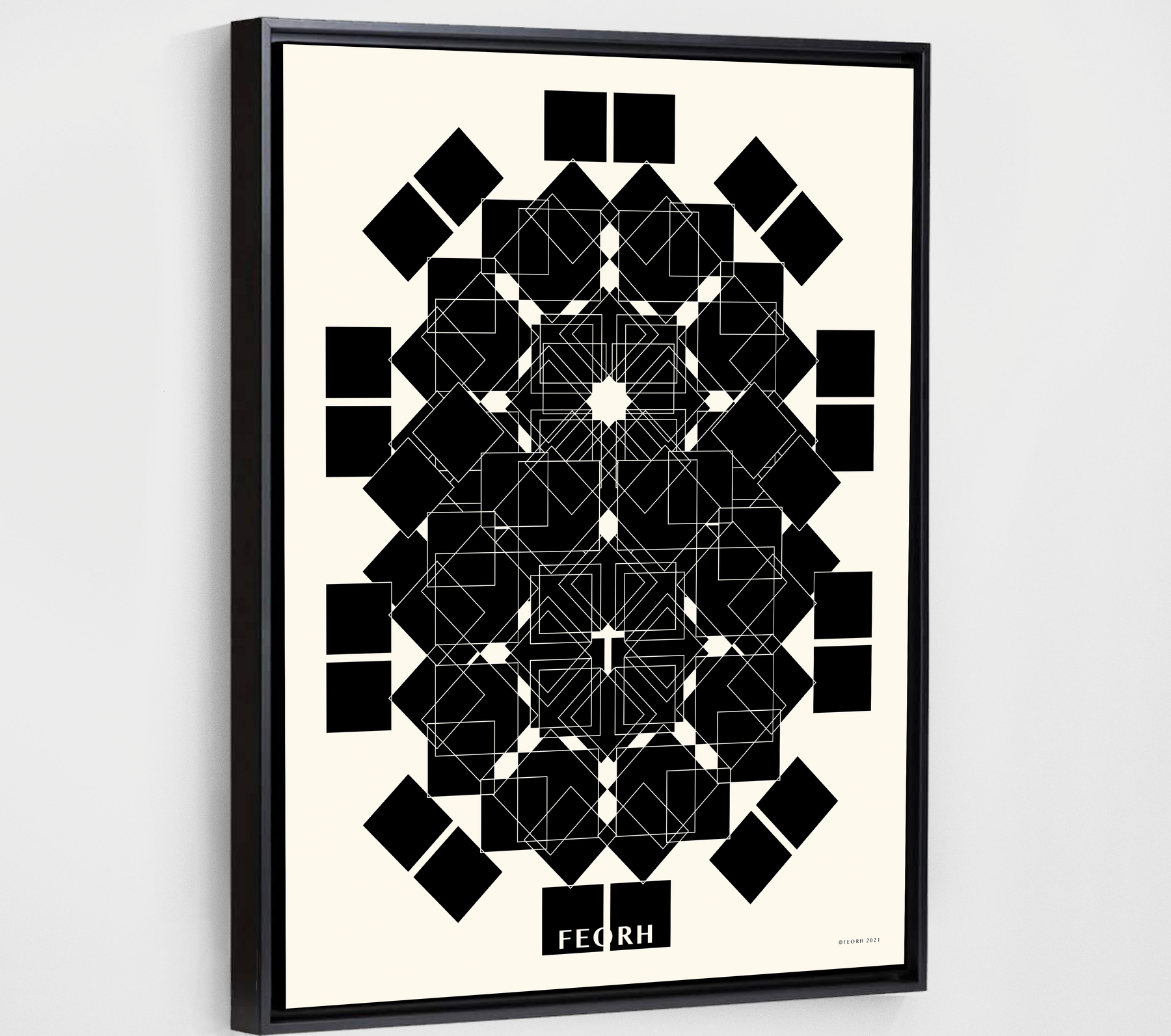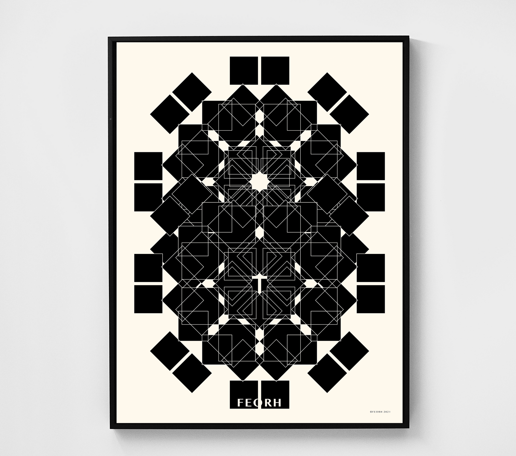 All purchases are delivered in Feorh's signature eco-friendly box. Each Feorh framed piece is shipped in a heavy duty poly bag with bubble wrapped corner protectors. Frames are shipped with hanging wire and hardware attached.