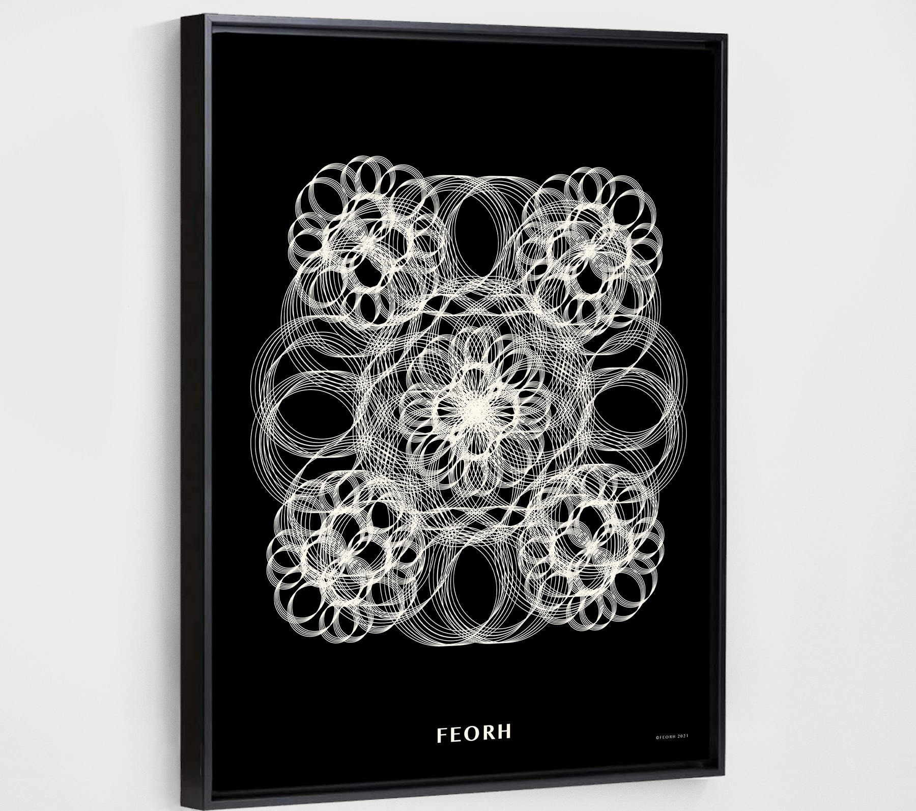 All purchases are delivered in Feorh's signature eco-friendly box. Each Feorh framed piece is shipped in a heavy duty poly bag with bubble wrapped corner protectors. Frames are shipped with hanging wire and hardware attached.
