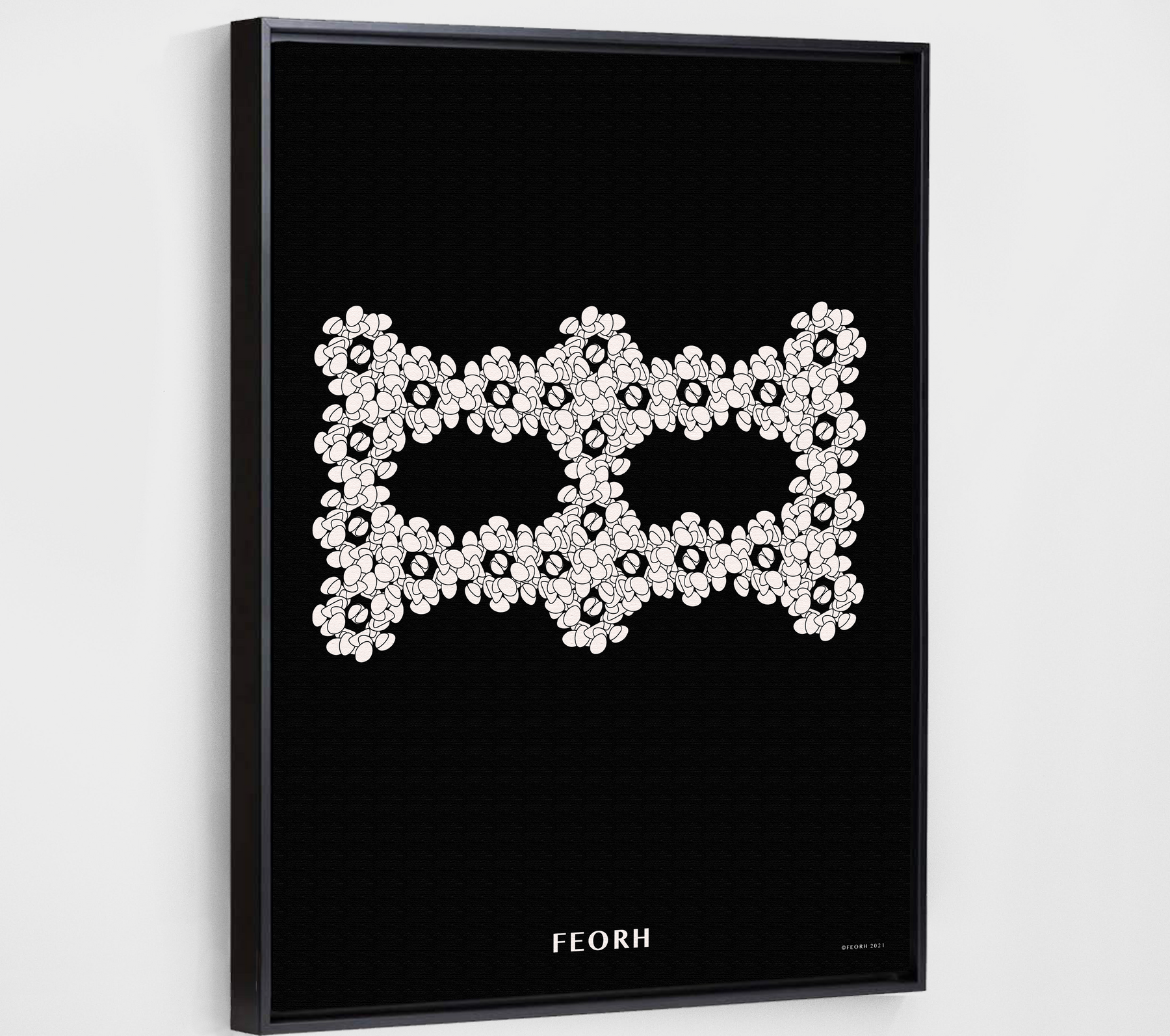 All purchases are delivered in Feorh's signature eco-friendly box. Each Feorh framed piece is shipped in a heavy duty poly bag with bubble wrapped corner protectors. Frames are shipped with hanging wire and hardware attached.
