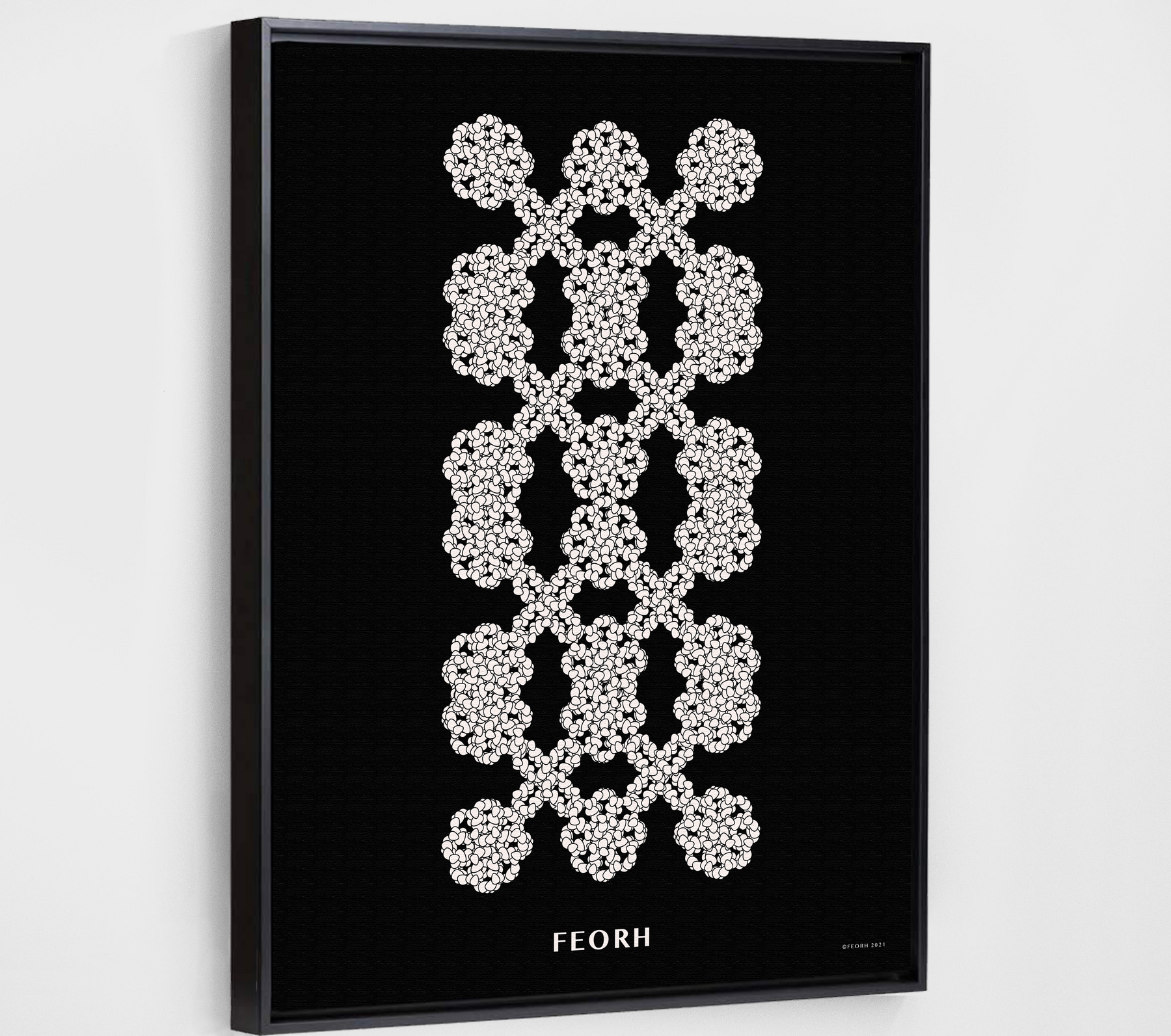 All purchases are delivered in Feorh's signature eco-friendly box. Each Feorh framed piece is shipped in a heavy duty poly bag with bubble wrapped corner protectors. Frames are shipped with hanging wire and hardware attached.