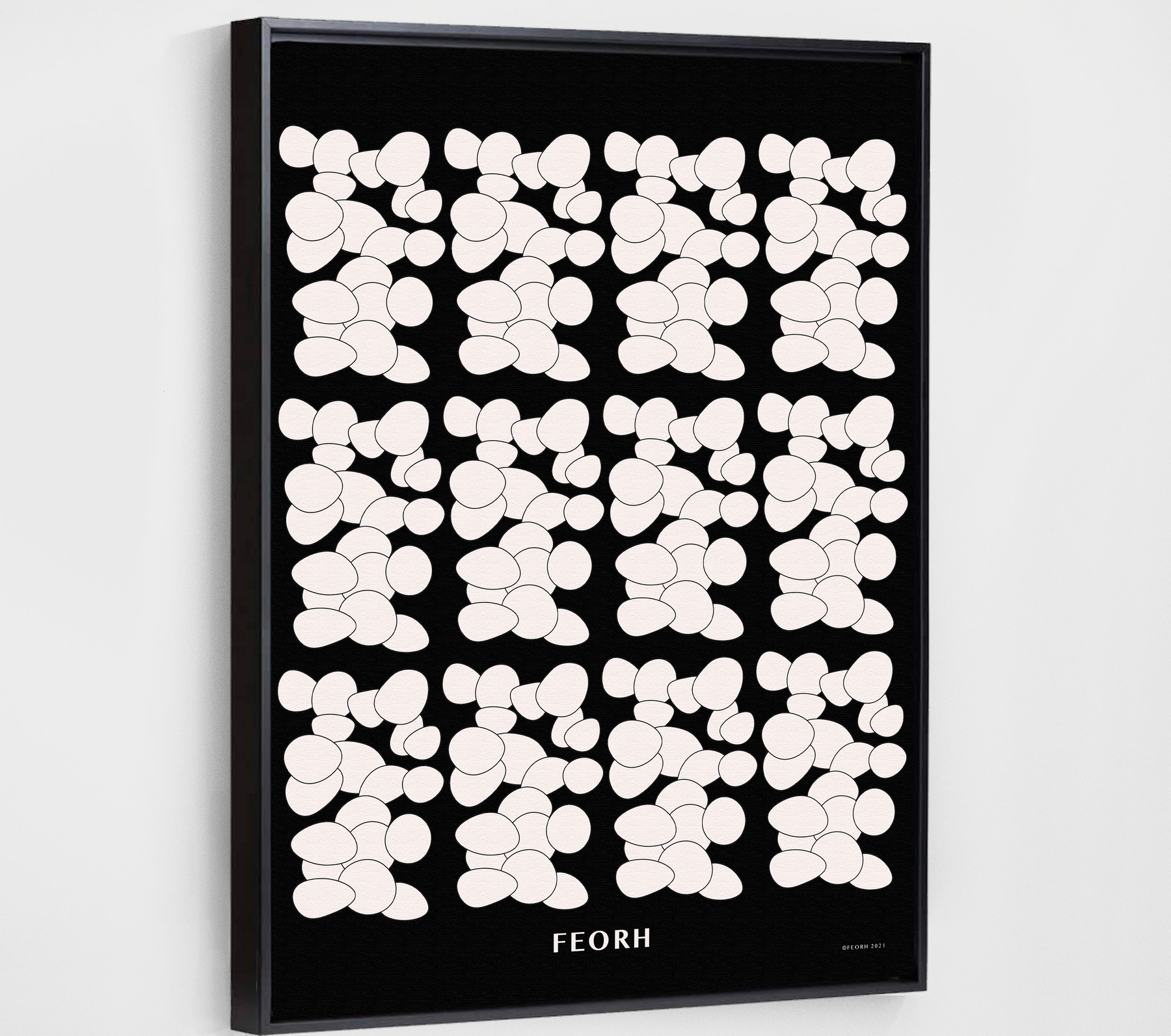 All purchases are delivered in Feorh's signature eco-friendly box. Each Feorh framed piece is shipped in a heavy duty poly bag with bubble wrapped corner protectors. Frames are shipped with hanging wire and hardware attached.