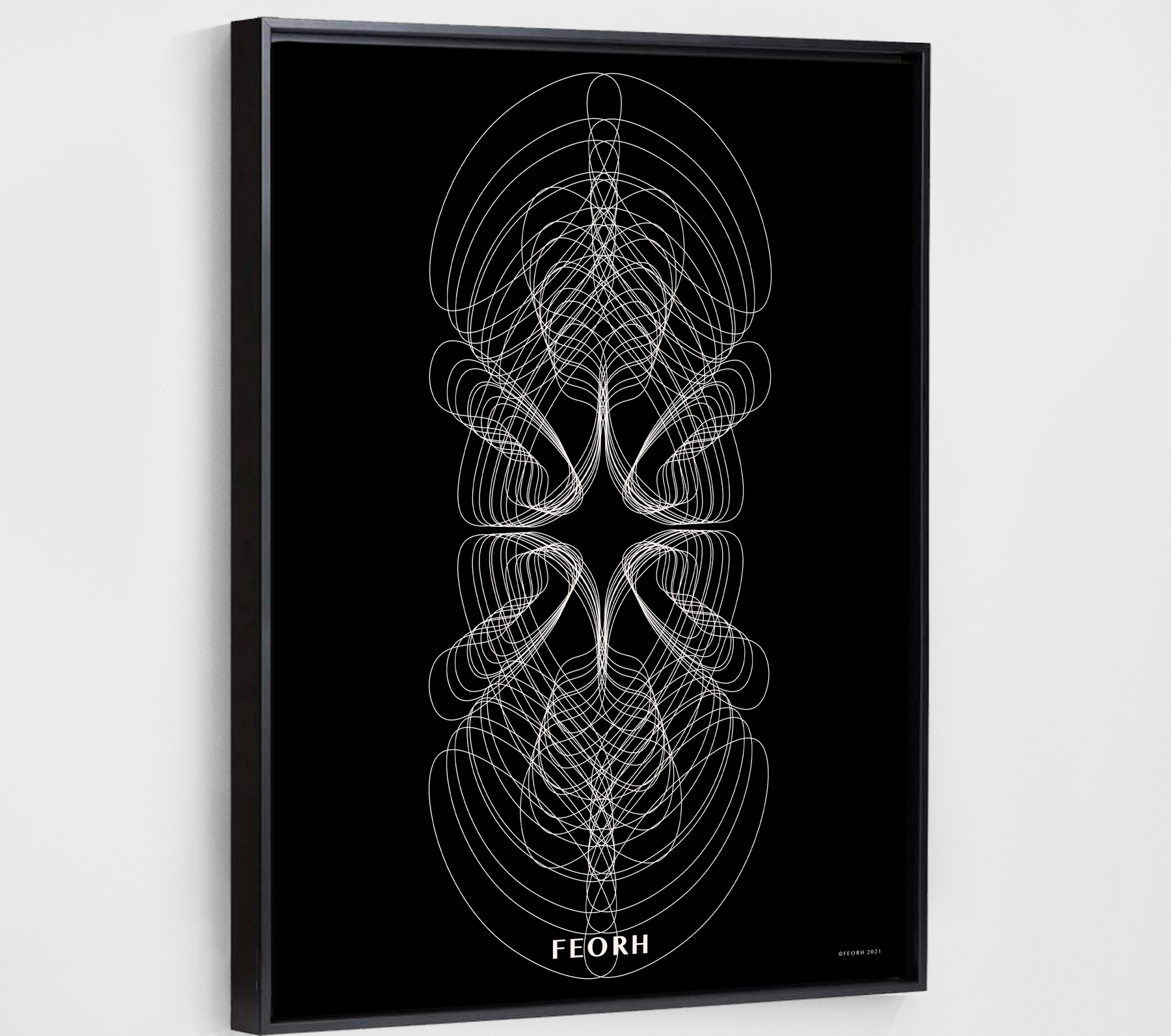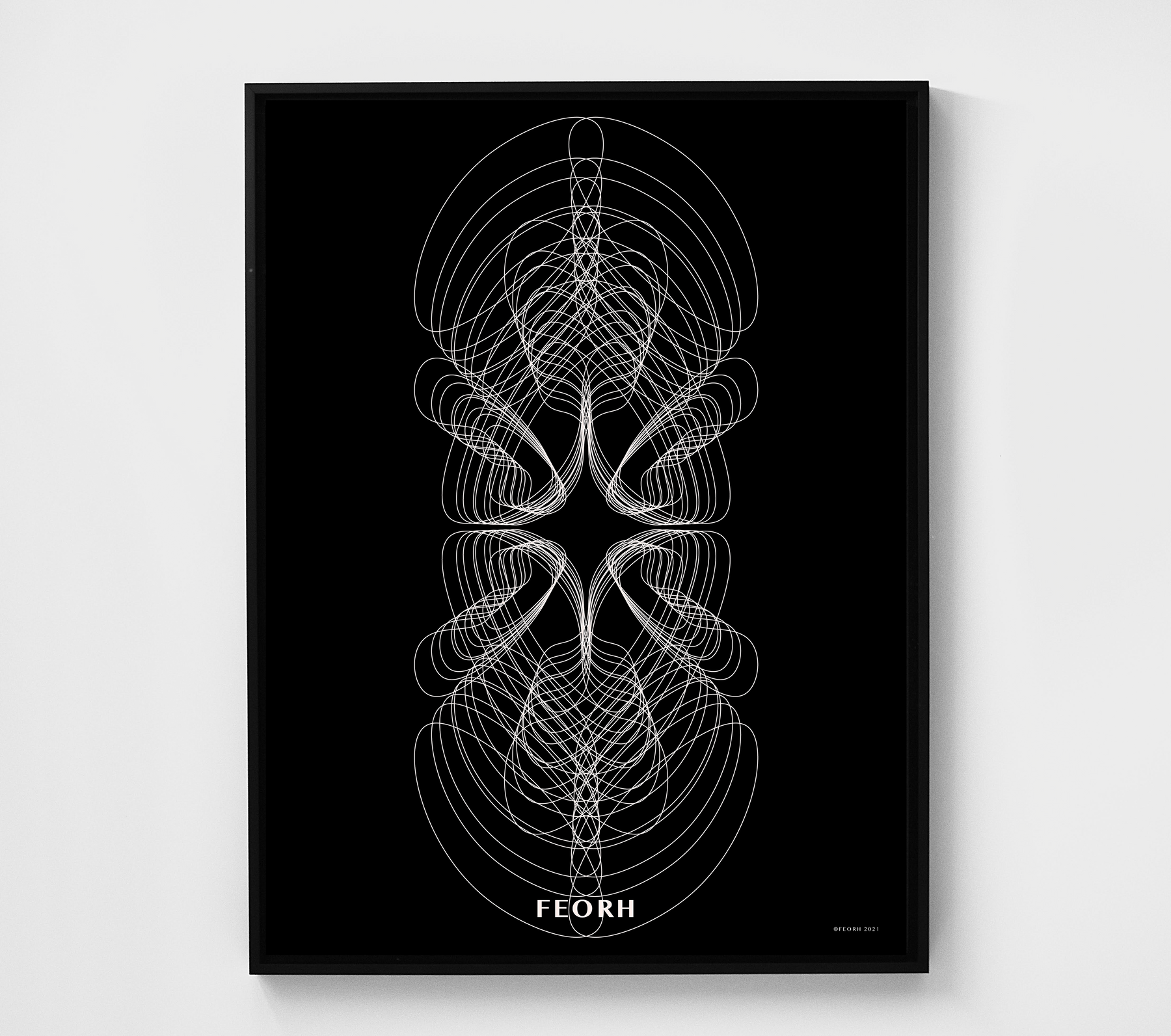 All purchases are delivered in Feorh's signature eco-friendly box. Each Feorh framed piece is shipped in a heavy duty poly bag with bubble wrapped corner protectors. Frames are shipped with hanging wire and hardware attached.