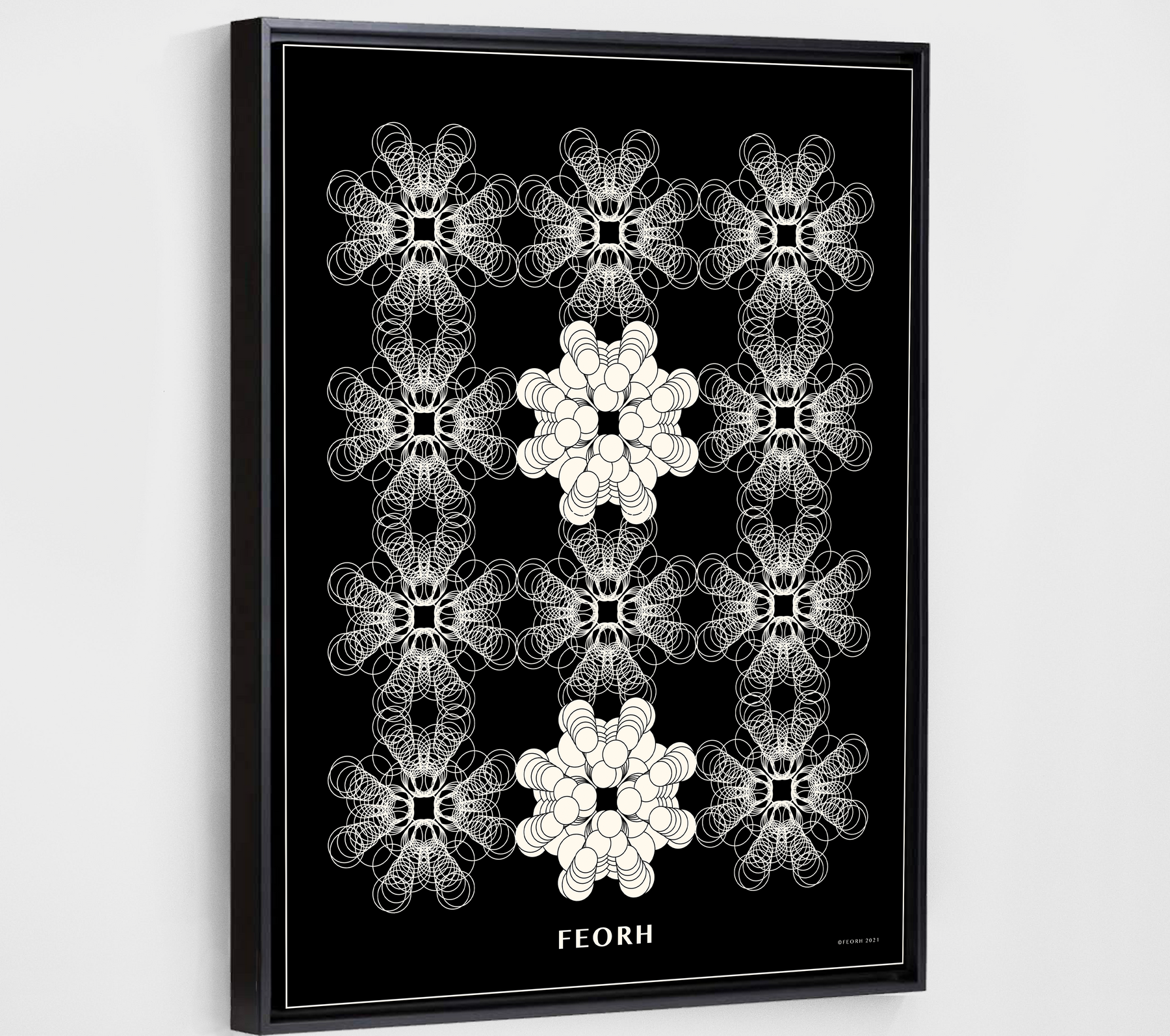 All purchases are delivered in Feorh's signature eco-friendly box. Each Feorh framed piece is shipped in a heavy duty poly bag with bubble wrapped corner protectors. Frames are shipped with hanging wire and hardware attached.